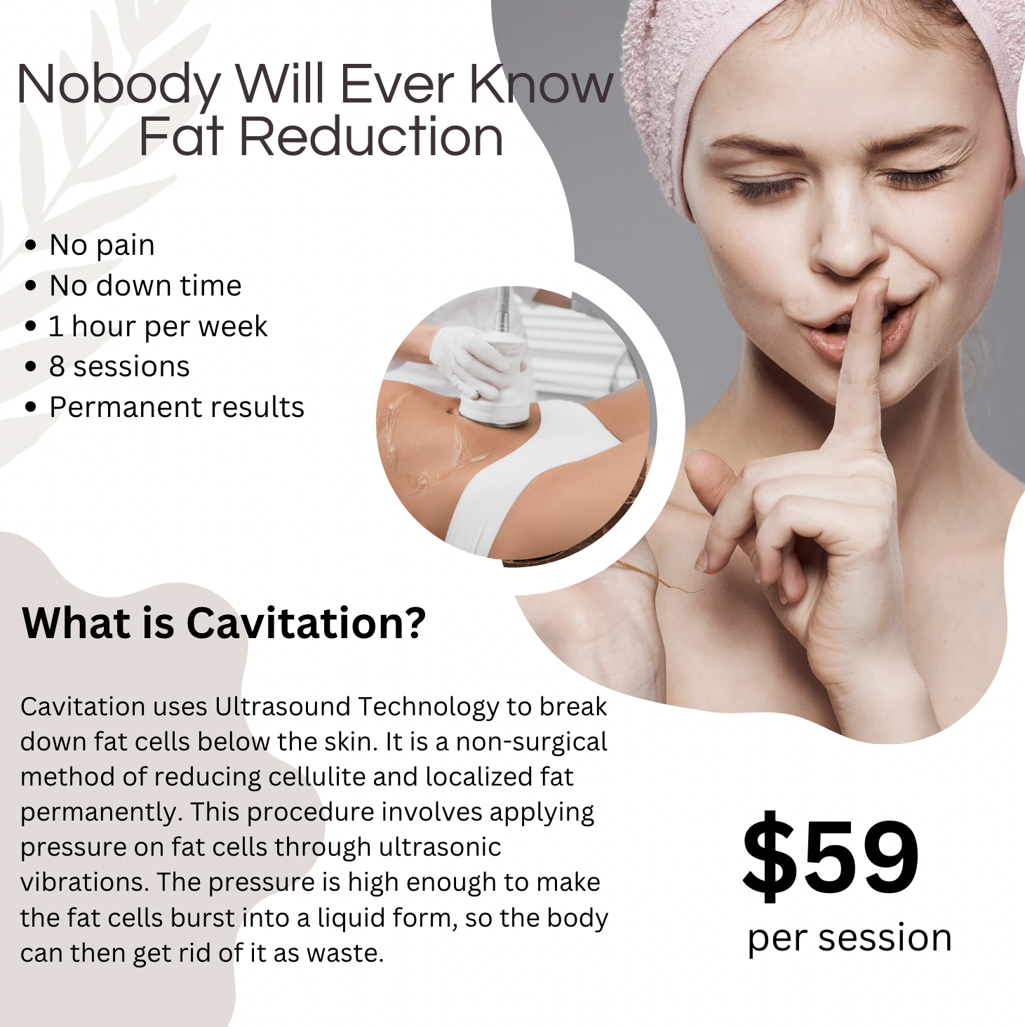 Cavitation Technology ​​introduces gentle ultrasound waves, which help to achieve slimming goals. Ultrasound Slimming Technology is safe non-invasive treatment that is pain-free and no downtime with long-lasting results. This procedure involves applying pressure on fat cells through ultrasonic vibrations. The pressure is high enough to make the fat cells break down into a liquid form. The body can then get rid of it as waste.